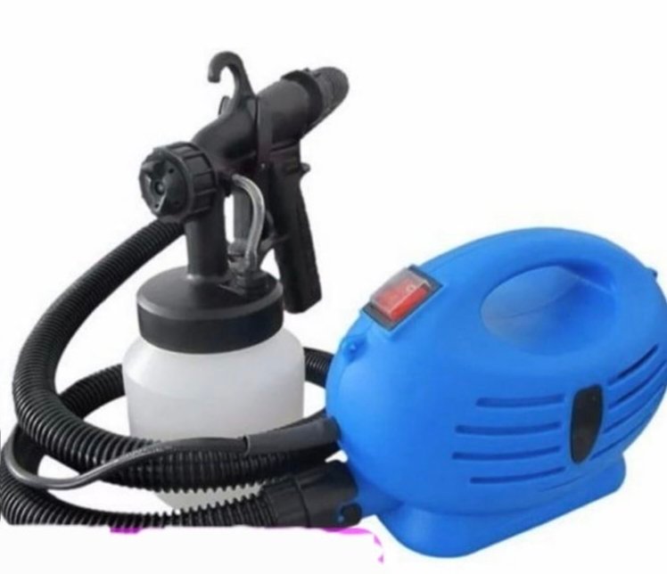 Product Description: The Paint Zoom is an electric paint sprayer designed for easy and efficient painting of walls, furniture, and other surfaces. It features a blue motor unit with a black spray gun, a hose, and a detachable white paint container. The device is lightweight and user-friendly, making DIY painting projects quicker and less messy.